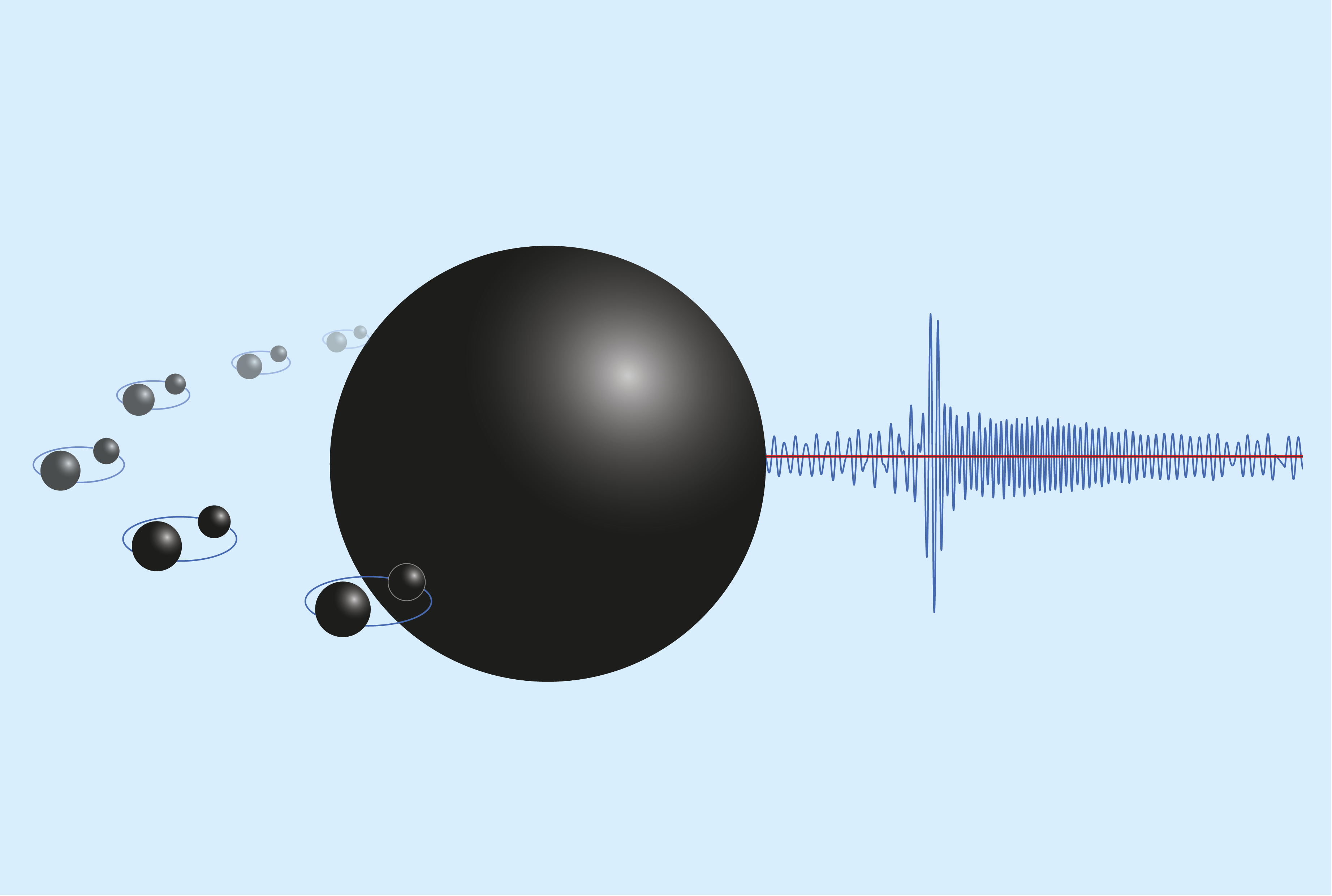 In the last decade, the gravitational wave observations of binary black hole coalescences in the LIGO-Virgo-KAGRA detectors have given us an invaluable amount of information on the nature of black holes and of gravity when it is at its strongest. Still, among many questions that remain open, a particularly striking one is that of binary formation. How are black holes meeting up and merging in a Universe that is so sparsely populated with stars and, presumably, also by black holes? It is thought that part of the answer lies in that some black hole binary systems form and evolve within accretion disks around supermassive black holes in galactic nuclei. These particularly dense regions of our Universe, which facilitate encounters between compact objects; moreover, the interactions of the binary with the neighbouring massive black hole can help bring them together and merge! The dynamics and gravitational radiation from such systems are incredibly rich: gravitational waves from the binary are beamed and lensed by the supermassive partner, and may even excite its proper modes of vibration. As gravitational wave physics consolidates into a field of precision science, we may soon be able to unlock the full potential of these triple systems. First, however, we need to model them accurately. In a recent work published in Physical Review Letters, João Sieiro dos Santos, Vítor Cardoso, Maarten van de Meent, and a collaborator from IST developed the first full theoretical model of wave generation from first principles in the setup described above. Using it, they begin to unveil all the exciting rhythms of this threefold cosmic tango. They show that three-body systems are exciting physics laboratories, exhibiting interesting phenomenology from Doppler shifts due to the motion of the center of mass of the small binary, to the excitation of the characteristic oscillations of the massive black hole, like a gravitational tuning fork!